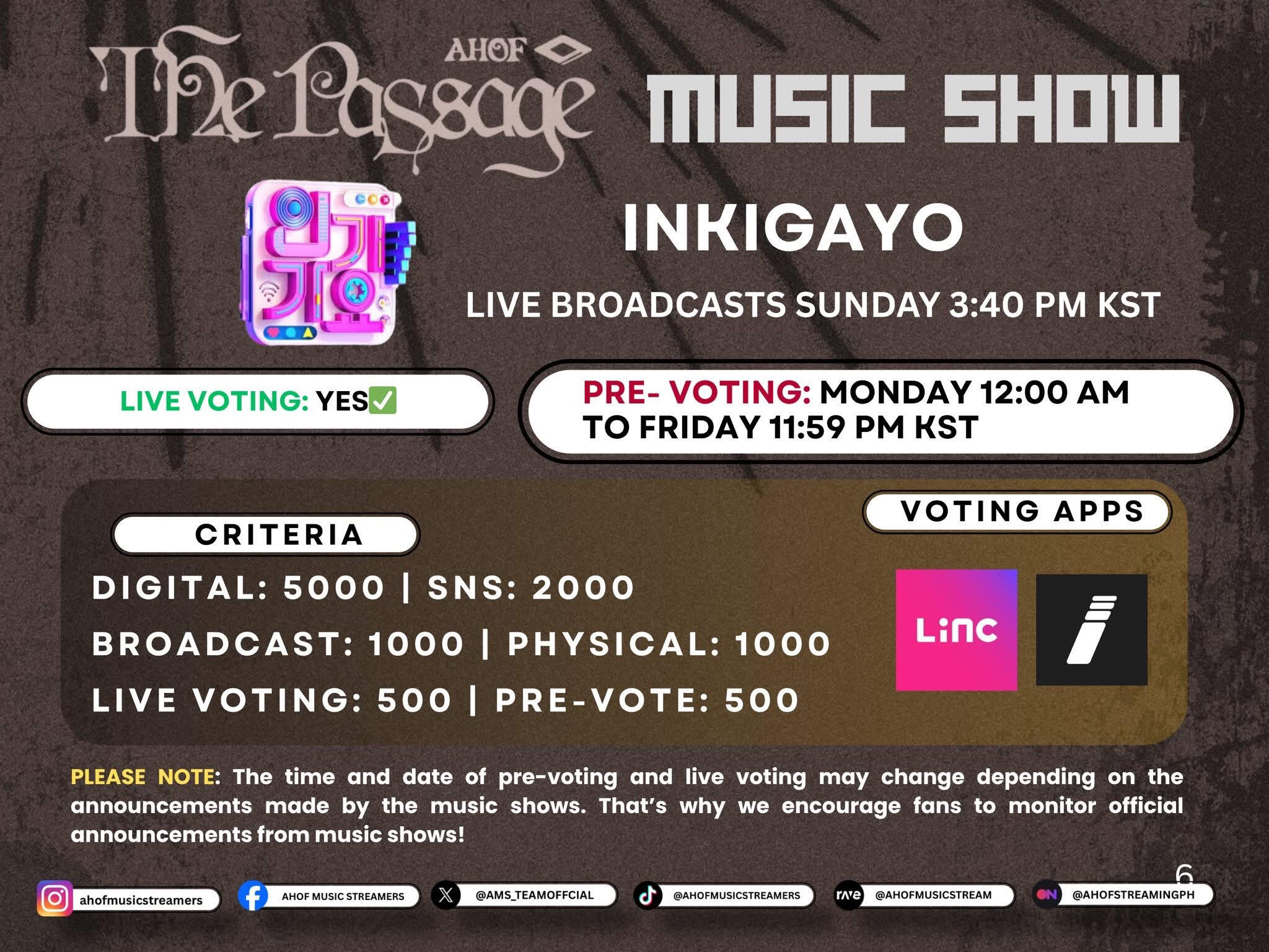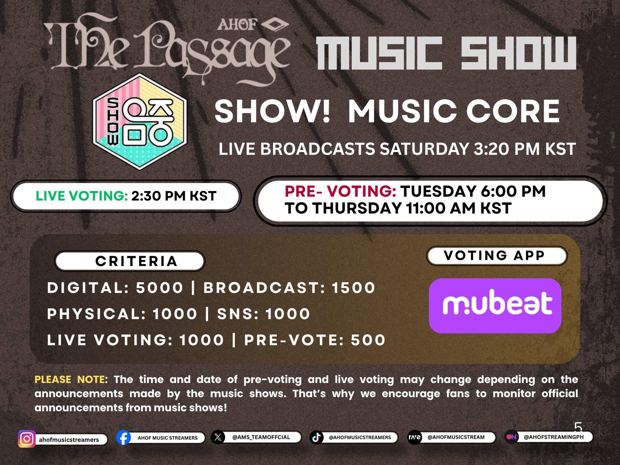 As part of our preparation for AHOF’s upcoming comeback, we’ve created a set of simple and easy-to-follow guides for Korean music shows. These are made to help everyone understand how each show’s voting and scoring system works.Please help us share these guides so our fandom can be more informed and ready to support AHOF this comeback!⚠️ Disclaimer:
